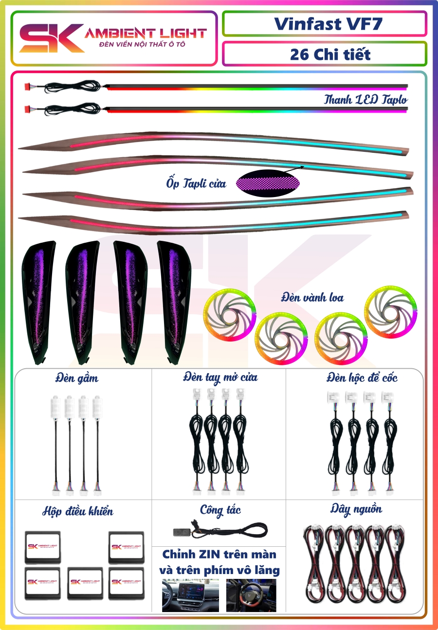 Bạn đang sở hữu chiếc VinFast VF 7 – mẫu SUV điện thời thượng, đậm chất công nghệ và tương lai? Hãy nâng cấp khoảng nội thất trở nên sống động, cá tính và thông minh hơn với bộ đèn Led nội thất Vinfast VF7 từ SK Ambient Light – giải pháp ánh sáng cao cấp, an toàn và đậm chất cá nhân.